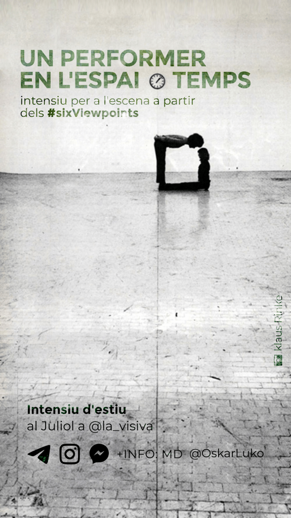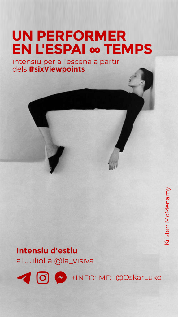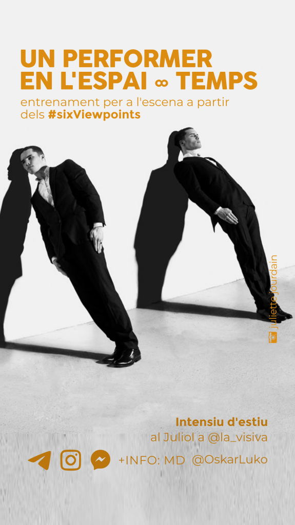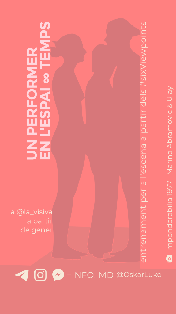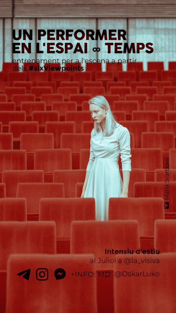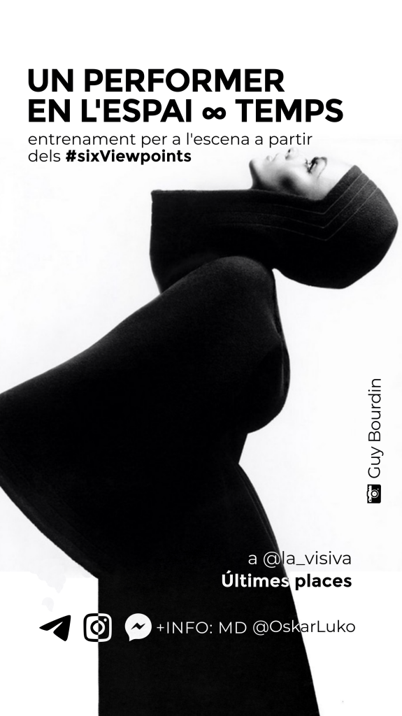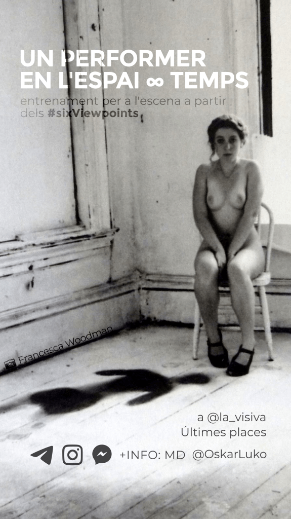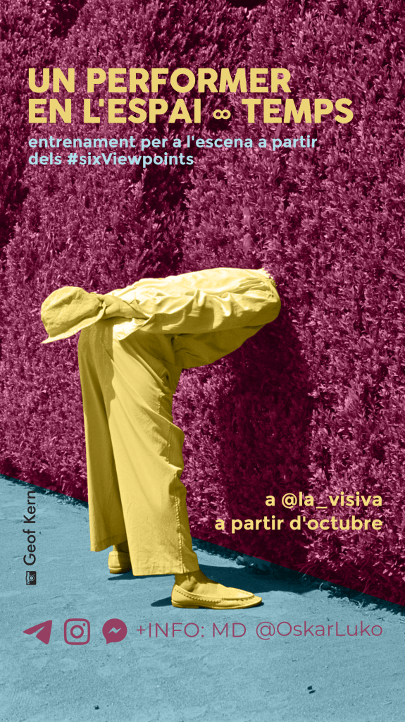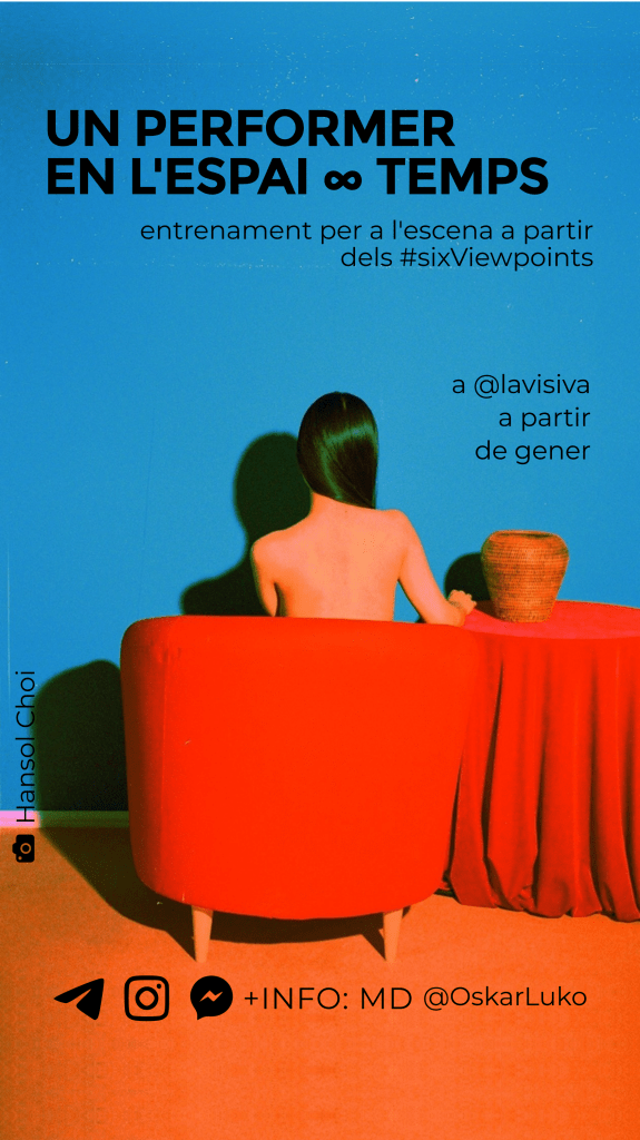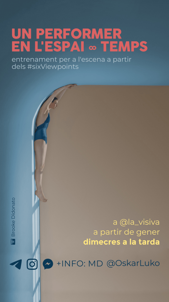 Diseño de imagen, carteles y adaptaciones para la difusión en redes, facebook e Instagram, de los entrenamientos regulares UN PERFORMER EN EL ESPACIO∞TIEMPO a partir de los Six Viewpoints dirigidos a profesionales de la escena, impartidos por Oskar Luko.