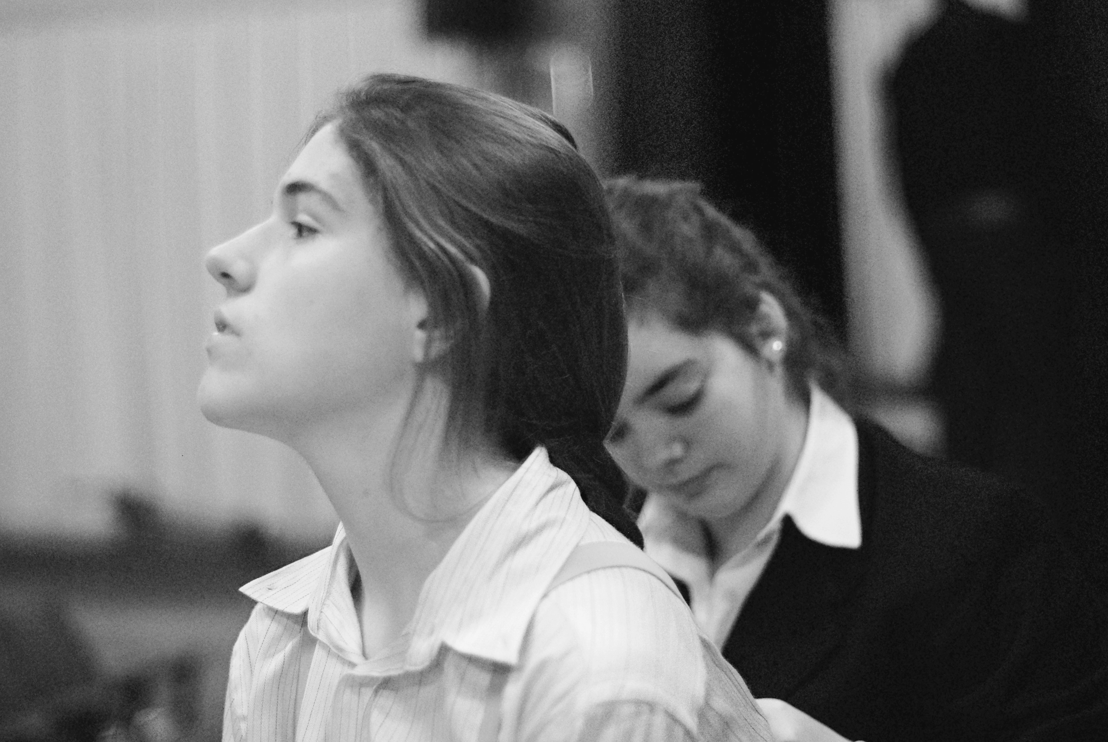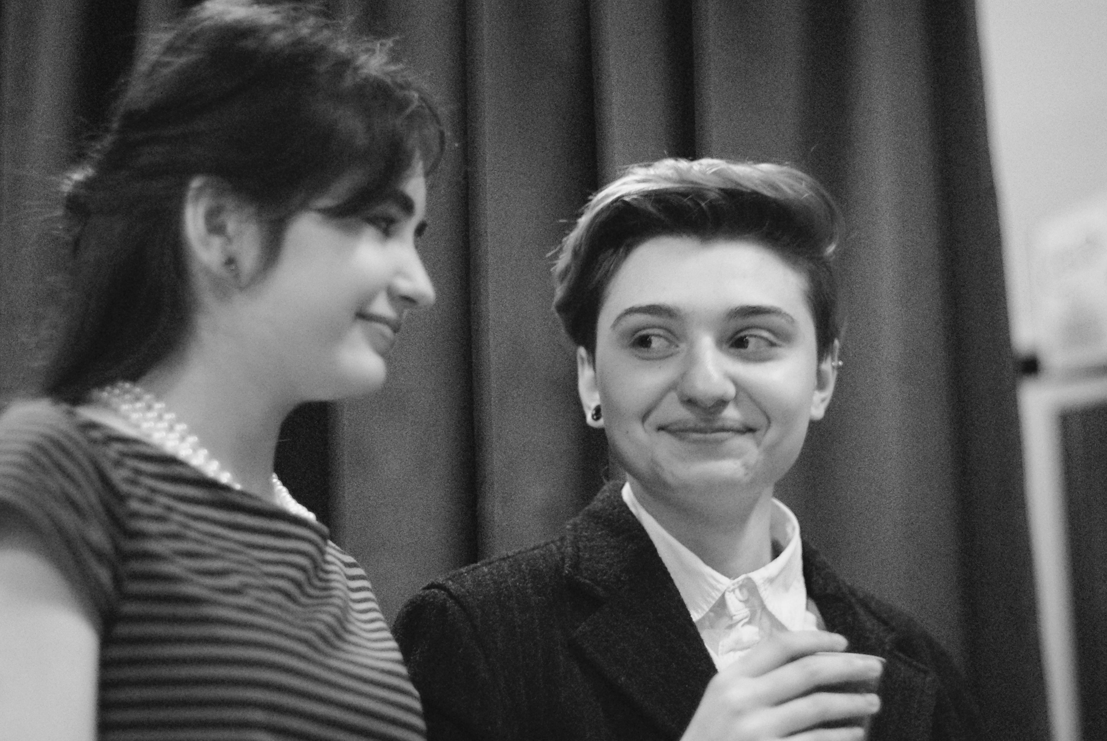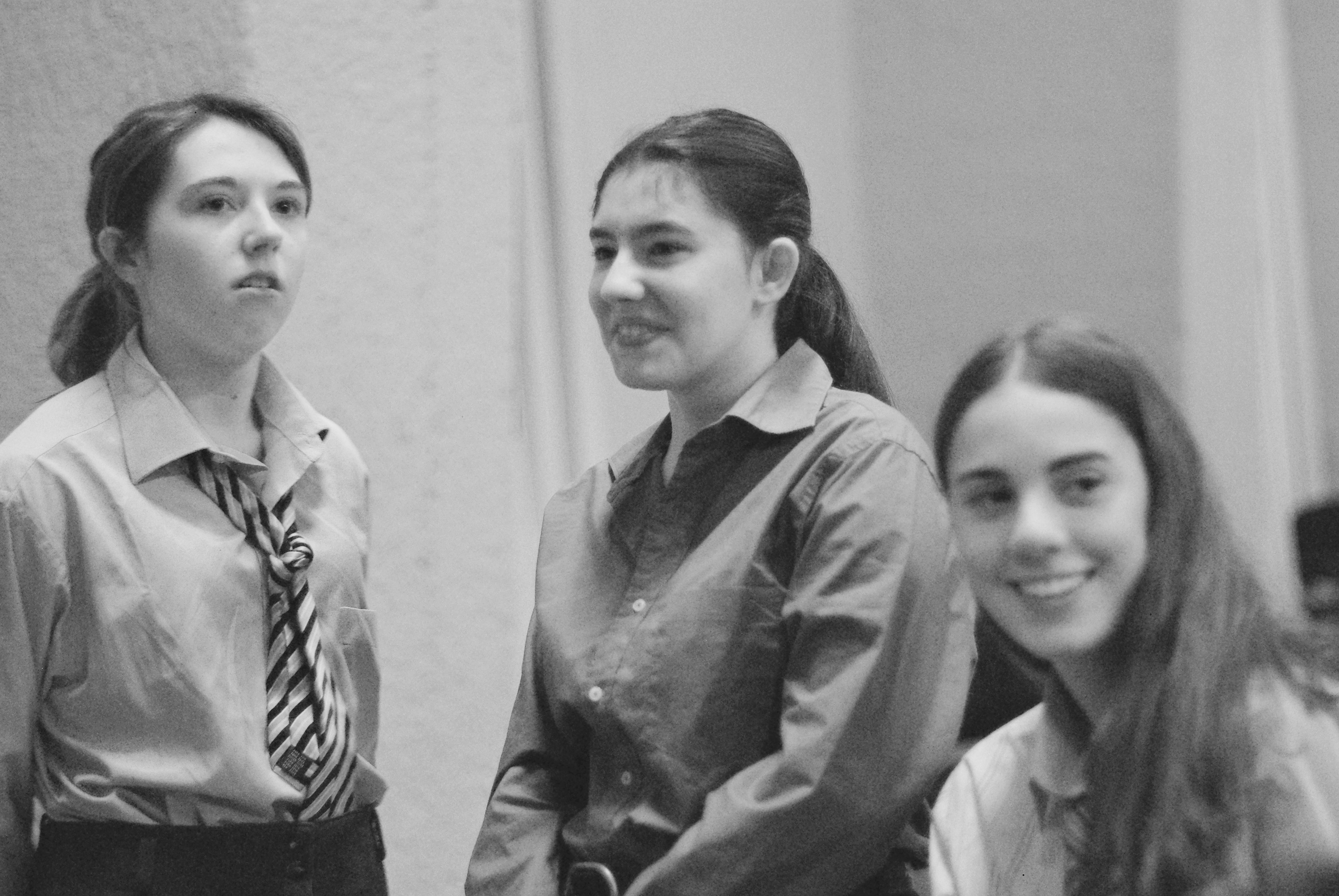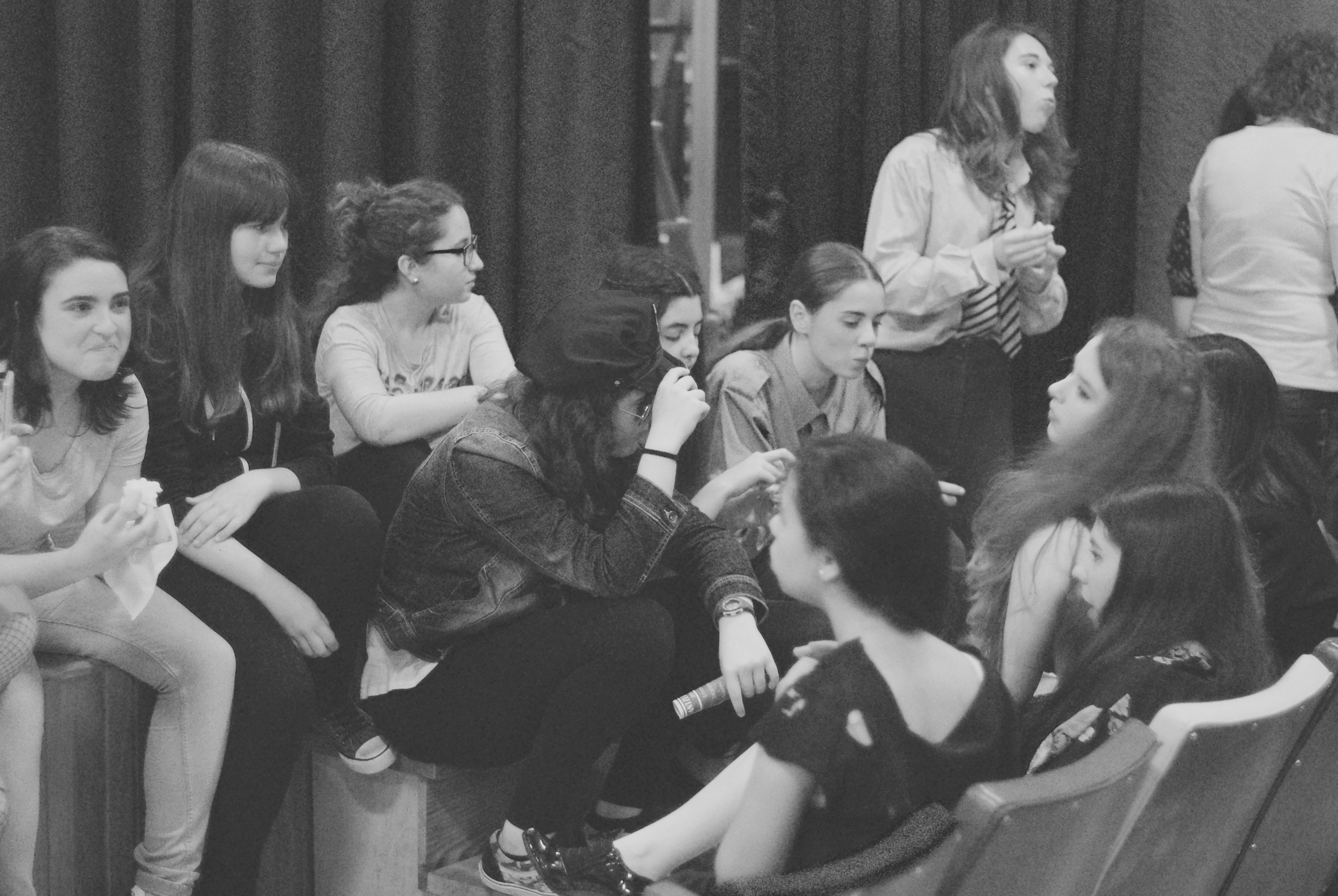 Las jóvenes interpretes del IES Txurdinaga Behekoa BHI de Bilbao antes de salir a escena.